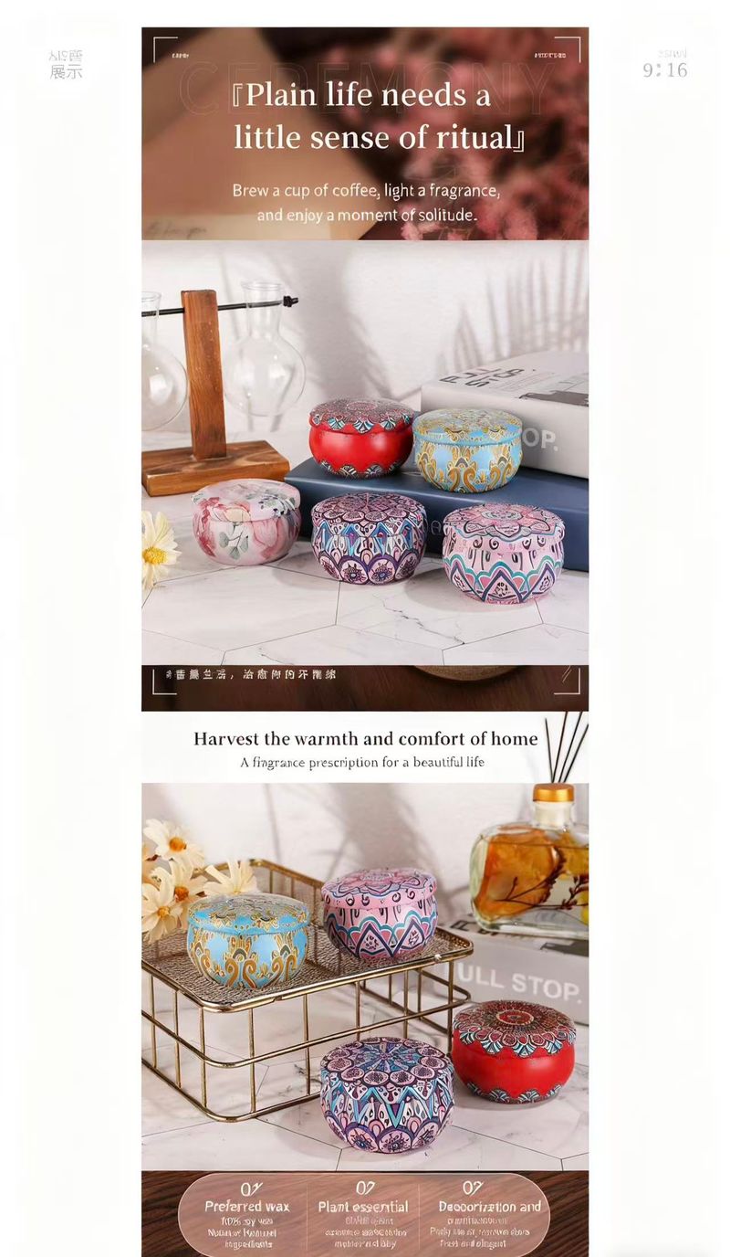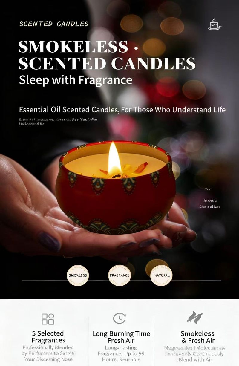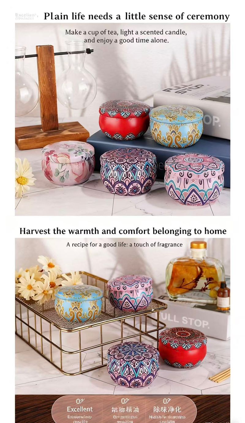 Imagine coming home after a long, chaotic day—your shoulders are tight, your mind is still racing with to-do lists. You kick off your shoes, walk to the living room, and light one of our Small Tin Scented Candles. The tiny 7cm×5cm tin fits perfectly on your coffee table, no clutter, just a soft flame flickering.